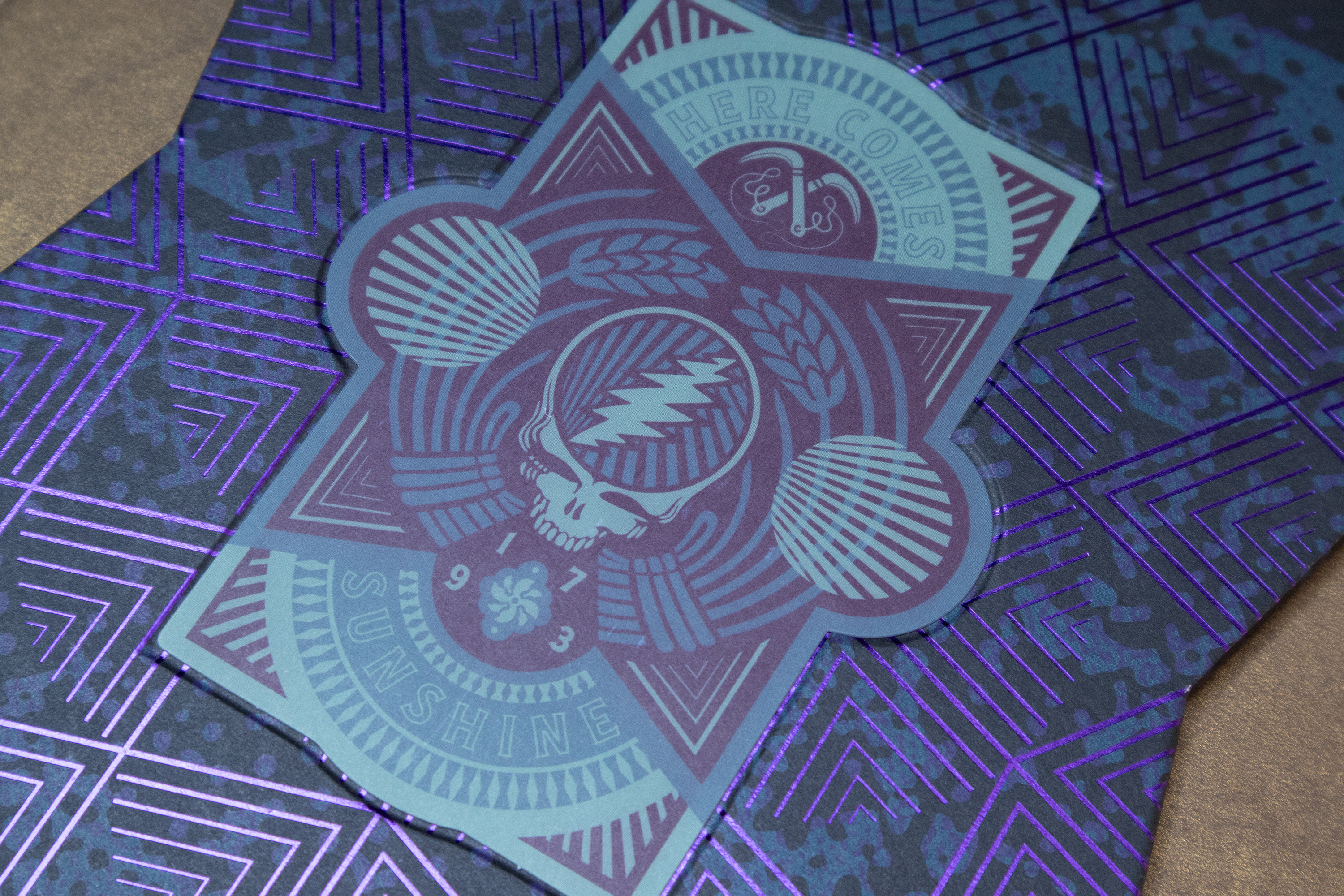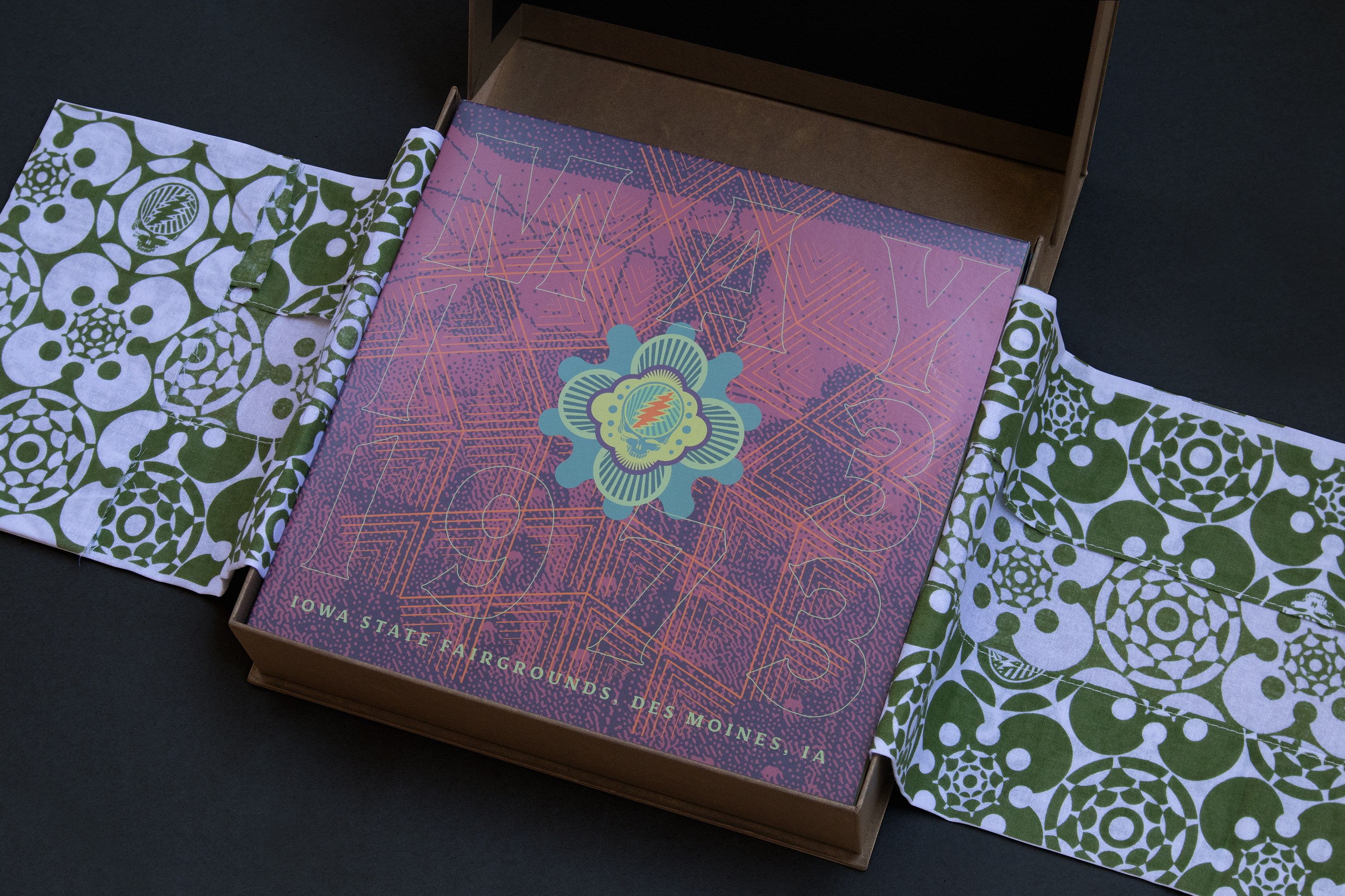 Clamshell box: wrapped in gold paper stock, black hot foil stamp